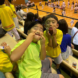 デビュー戦となった組手幼児の部に参加した2名(りひと、とら)と、小学2年女子(あこ、ひな)の大健闘に嬉しい気持ちになりました。
