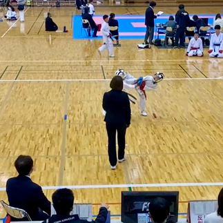 バネの塊(中1)真滉は、今回初めての試合ということで緊張していたことと昨日の疲れもあり、持ち前の伸びのある組手をする事ができず、勝ち残る事ができず敗退。本来の力はこんなものじゃなく、これを糧にして成長してくれると確信しています😤
